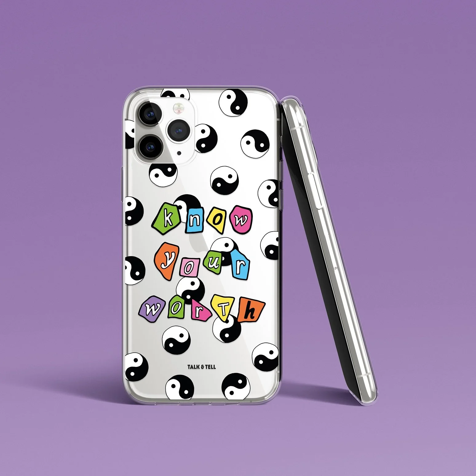 This Know Your Worth Ying Yang case is made from a transparent thermoplastic polyurethane (TPU), a hybrid material made from a mixture between hard plastic and soft silicone, in other words its fully flexible and can be bent in half.